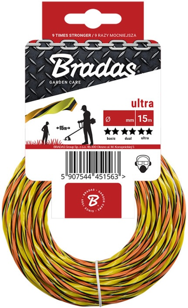Волосінь для тримера Bradas Ultra L3 кручена 1.6 мм 15 м (ZUL3T1615K)