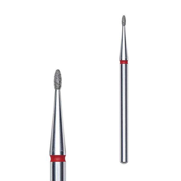 Фреза алмазна STALEKS Олива закруглена 1.2*3мм, червона