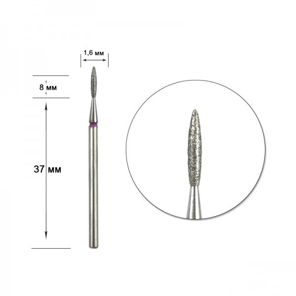 Фреза алмазна STALEKS PRO почка гостра червона діаметр 1,8 мм / робоча частина 4 мм