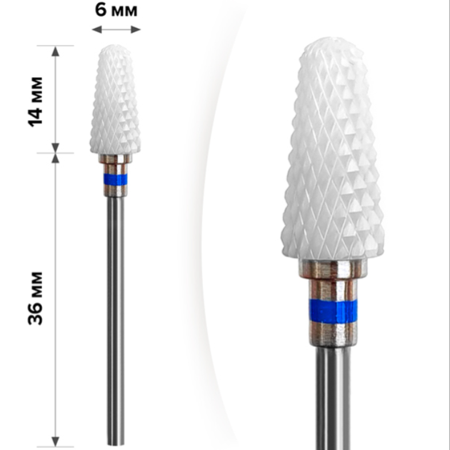 Насадка керамічна DF204М для зняття гель-лаку, d=14*6 мм, синя