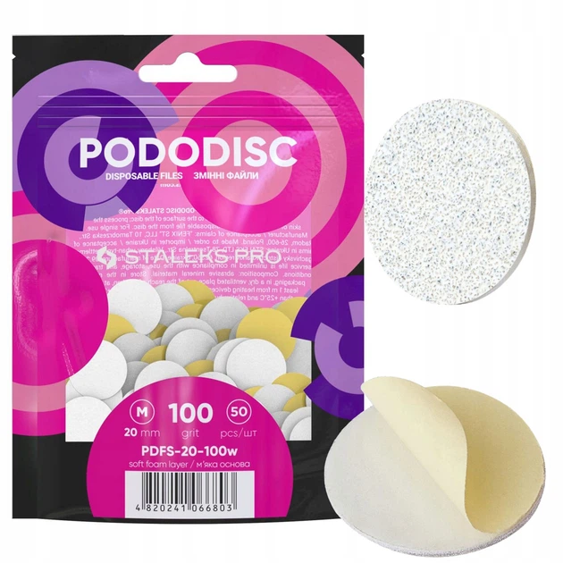 Змінні файли білі для педикюрного диска на м'якій основі 100 грит PRO PODODISC M PDFS-20-100w STALEKS 50 шт