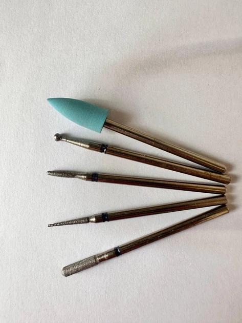 Набір алмазних фрез для кутикули 5шт+силіконовий полірувальник Блакитний №1