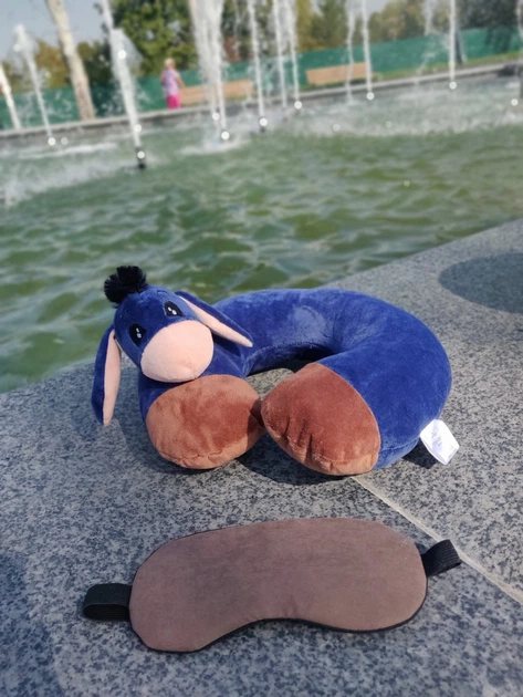 Набір дорожня подушка підголовник Ослик Іа + маска на очі 30х30х8 см Синій, Коричневий 16012