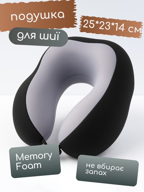 Подушка для подорожей Camelback дорожня подушка для шиї в літак з ефектом пам'яті 25х23х14 см Сірий