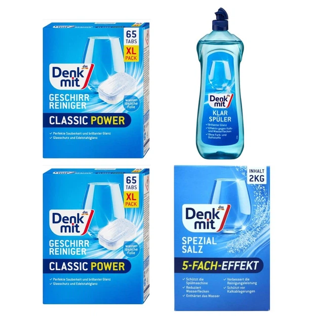 Набір DenkMit для посудомийки таблетки 65шт 2уп + Сіль 2кг + Ополіскувач
