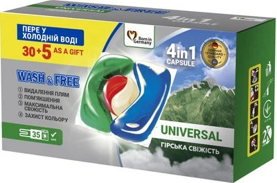 Капсули для прання WASH & FREE Гірська свіжість 30+5 шт (4262396144430)