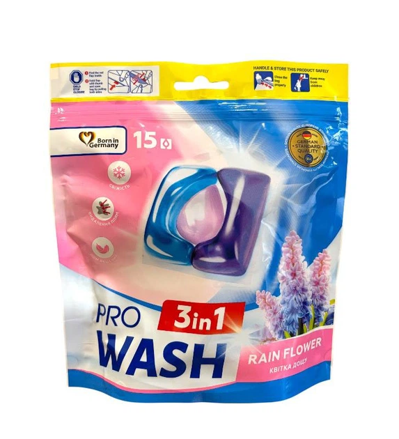 Капсулі для прання PRO WASH Квітка дощу 15 шт 5803