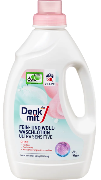 Гіпоалергенний гель для прання Denkmit Ultra Sensitive для делікатних і вовняних тканин, 1.5 л (30 прань)
