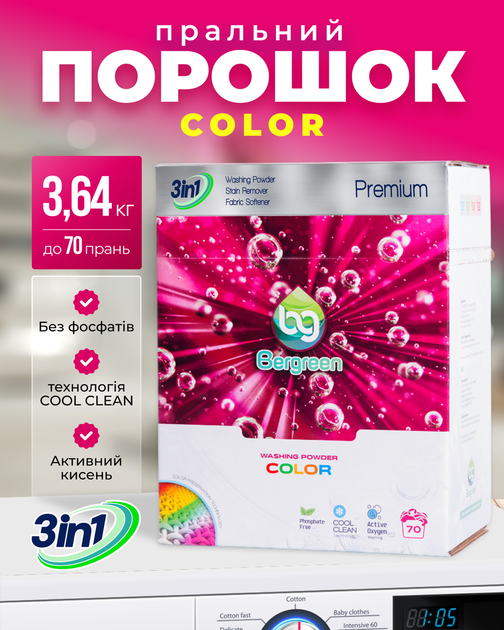 Пральний порошок для кольорових речей Bergreen Premium Color 3640 г