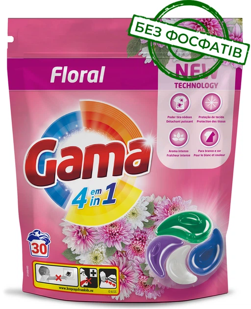 Капсули для прання Gama Floral 4 в 1 з квітковим ароматом (30 шт)