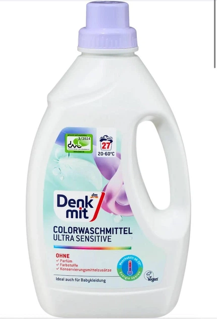Безфосфатний гіпоалергенний гель для прання дитячої кольорової білизни DenkMit Colorwaschmittel Ultra Sensitive 1,5 L
