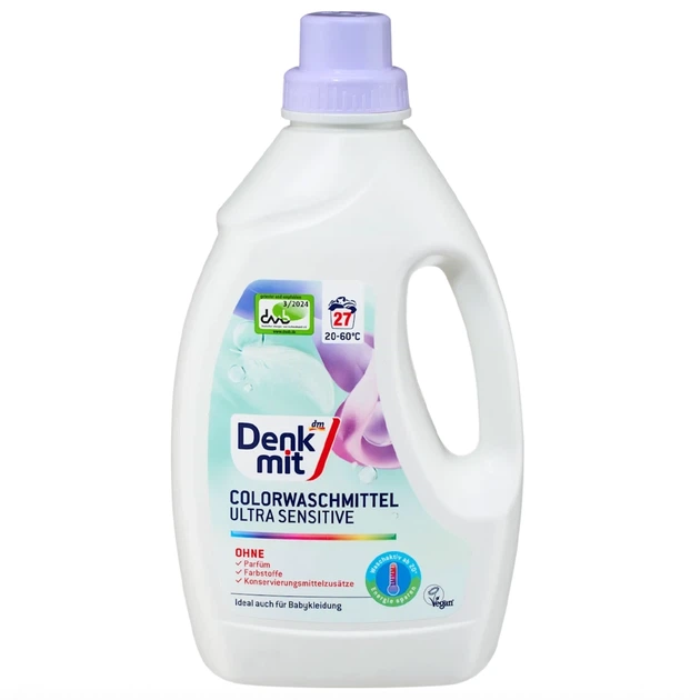 Гель для прання дитячої кольорової білизни Denkmit Ultra Sensitive, 1,5 л, 27 прань – дбайливе очищення для дитячих речей