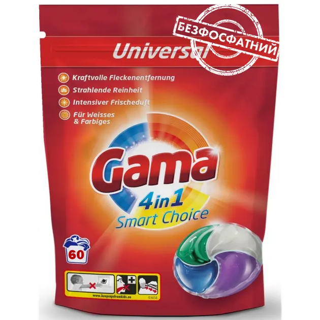 Гель-капсули для прання білизни Gama 4в1 Універсальні, 60 шт