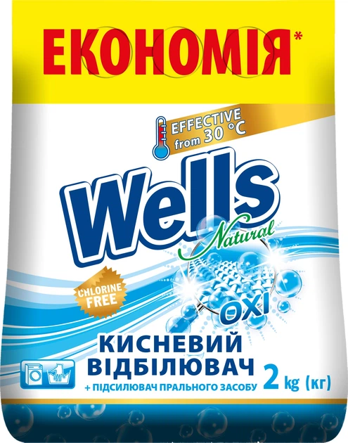 Відбілювач для тканин та підсилювач порошку Wells Natural 2 кг (4260700183410)
