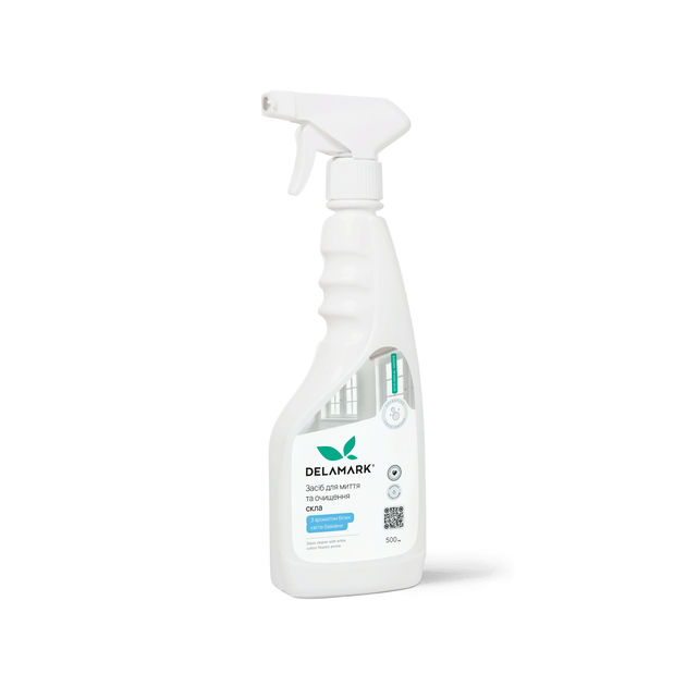 Засіб для миття скла білі квіти бавовни DeLaMark 0,5 л 4820152333681