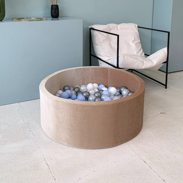 Сухий басейн Велюр оксамит бежевий з кульками 100 шт в комплекті 100х40см для дому в дитячу