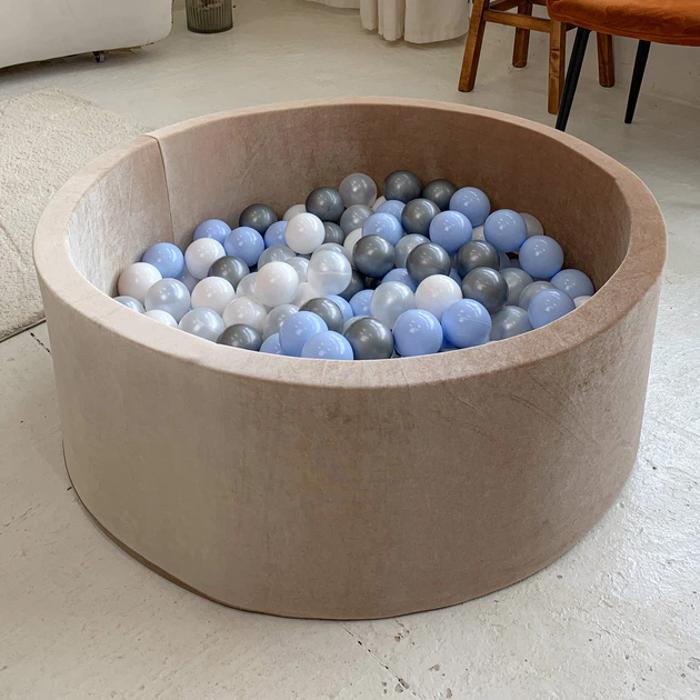 Сухий басейн Велюр оксамит бежевий з кульками 200 шт в комплекті 100х40см для дому в дитячу