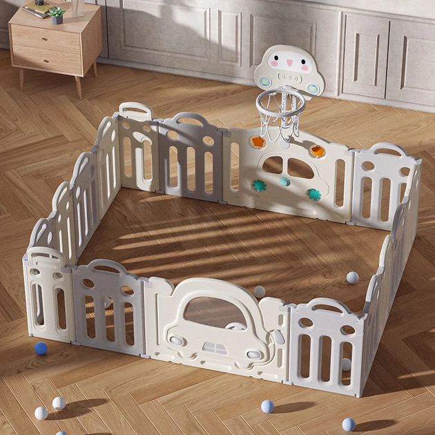 Ігровий манеж-огорожу Автомобіль 14+2 секцій 150см*200см + баскетбольна кільце Біло-сірий