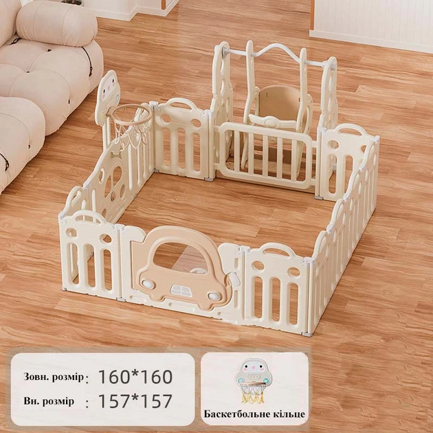 Ігровий манеж-огорожу Автомобіль 10+4 секцій 157см*157см + баскетбольне кільце + гойдалка