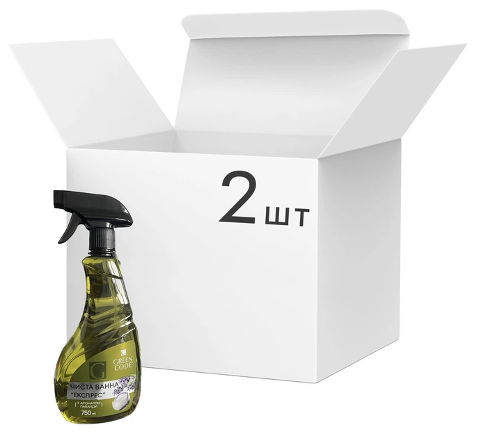 Упаковка чистячого засобу GREEN CODE Чиста ванна Експрес з ароматом лаванди 750 мл 2 шт (4820193590791)