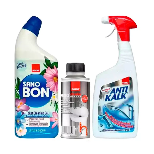 Набір Sano Засіб для видалення вапняного нальоту Anti Kalk, Засіб для видалення цвілі Mildew Remover, Засіб для прочищення к