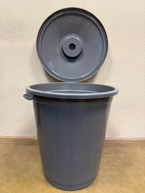 Бак для сміття 65 л з кришкою з харчового пластика сірий Горизонт