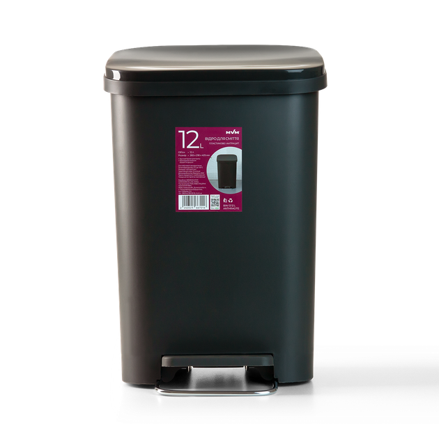 Відро для сміття MVM з кришкою і педаллю BIN-13 12 л Антрацит (BIN-13 12L ANTHRACITE)