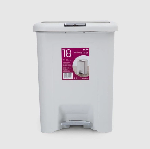 Відро для сміття з кришкою та педаллю MVM BIN-03 18L GRAY