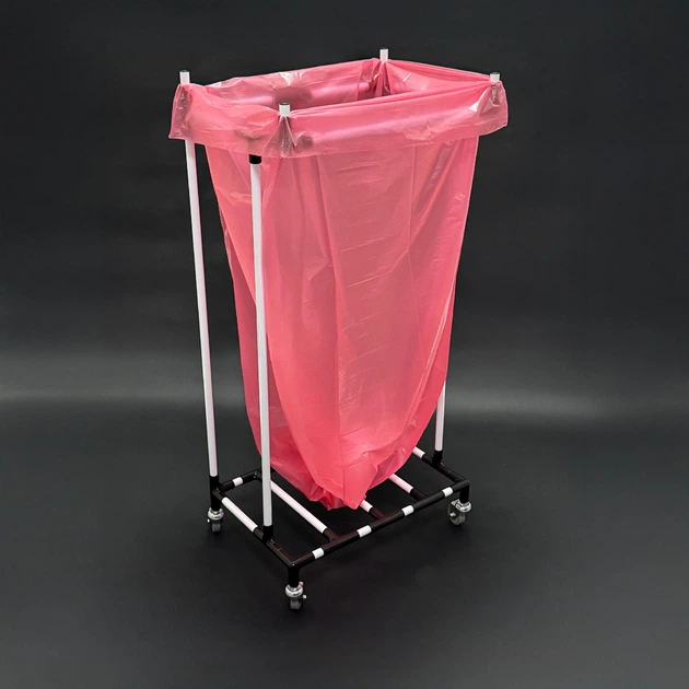 Металева стійка - тримач (контейнер) для сміттєвих пакетів для сухого та об'ємного сміття на колесах чорна Treho 240 SW. Біл