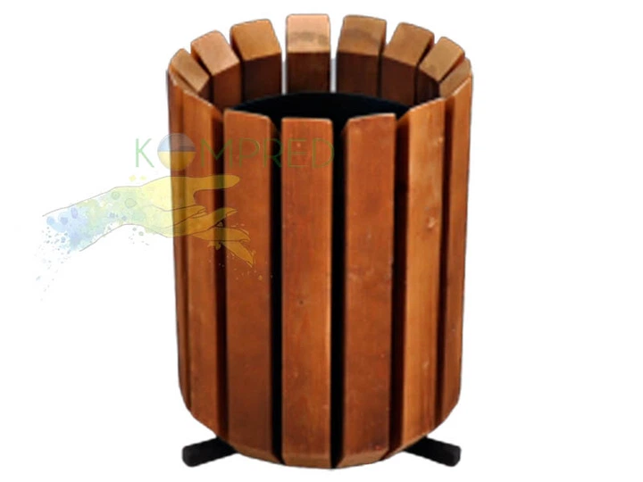 Урна паркова дерев'яна з металевим баком Бочка 380х380х550 мм Kompred OL845