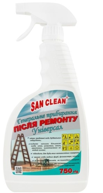 Універсальний мийний засіб San Clean для генерального прибирання після ремонту з розпилювачем, 750 мл