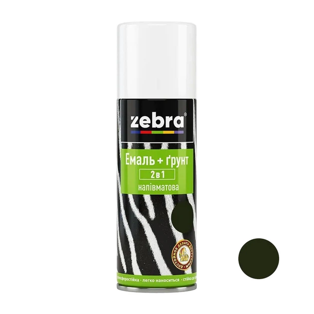 Емаль-ґрунт аерозольна Zebra 2 в 1 напівматова темний хакі 400 мл