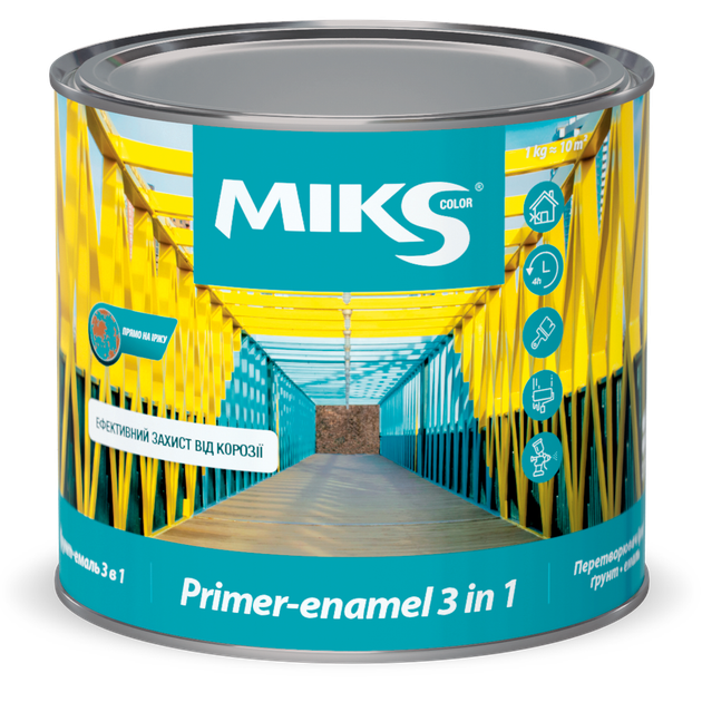 Ґрунт-емаль алкідна Miks Color 3 в 1 антикорозійна сіра RAL 7046 0.8кг