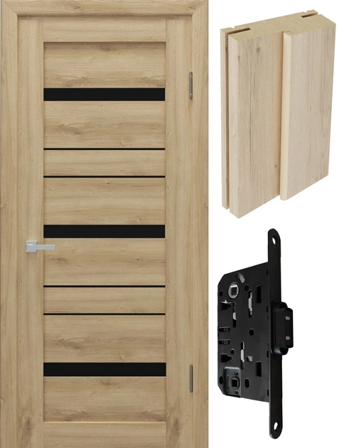 Двері міжкімнатні (комплект) Neman Рів'єра RV 03 Дуб Болтон 700 ПО (40 мм) чорне скло/410