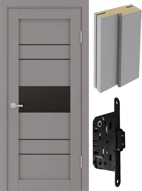 Двері міжкімнатні (комплект) Alliance Doors TEXAS Сірий Ультрамат 800 ПО (40 мм) чорне скло/410