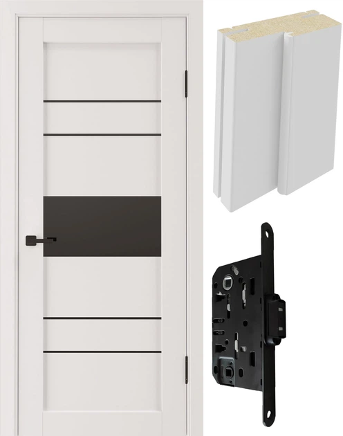 Двері міжкімнатні (комплект) Alliance Doors TEXAS Білий Ультрамат 600 ПО (40 мм) чорне скло/410