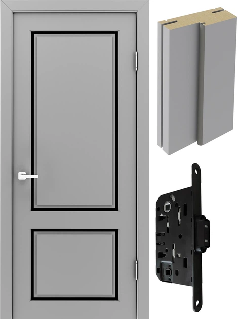 Двері міжкімнатні (комплект) Neman Честер Сірий Ультрамат 800 ПО (40 мм) чорне скло/410
