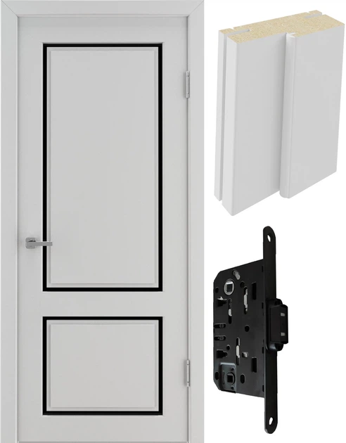 Двері міжкімнатні (комплект) Neman Честер Білий Ультрамат 800 ПО (40 мм) чорне скло/410