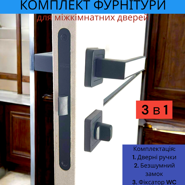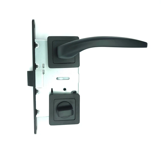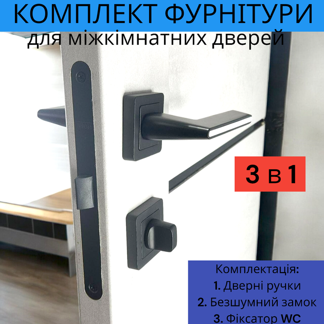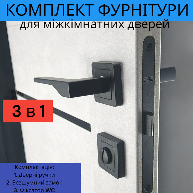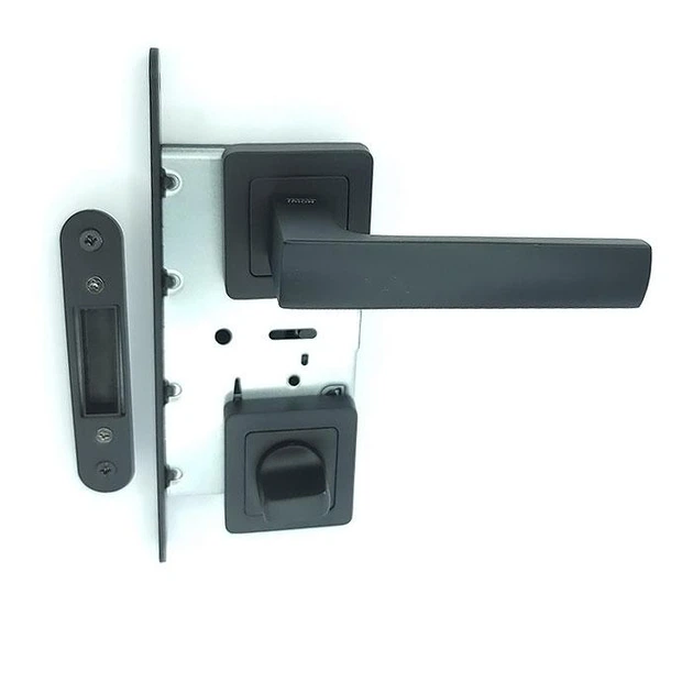 Комплект дверної ручки для міжкімнатних дверей на розетці із замком та засувкою TRION ZERO AL-74 Black чорний