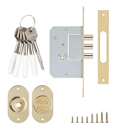 Механізм замок врізний для металевих та дерев'яних дверей Туреччина KALE 189 3MF 5 ключів 3 ригеля Латунь