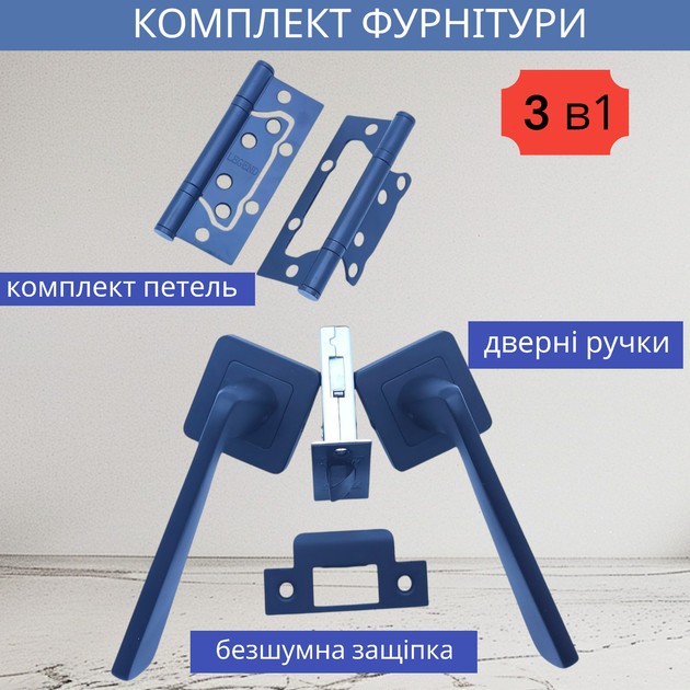 Комплект дверної ручки із замком засувкою петлями чорному кольорі для міжкімнатних дверей TRION GALAXY AL-49 BLACK