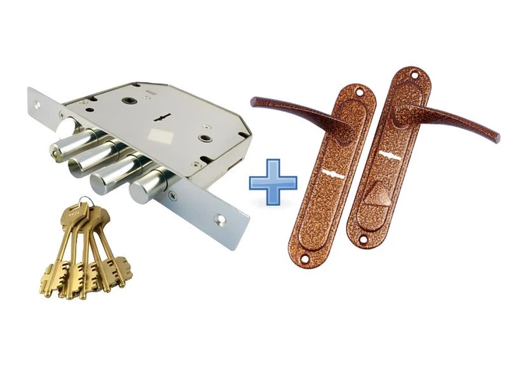 Замок дверний врізний сувальдний APECS T-21/S6-L-N з коричневими ручками лівосторонній