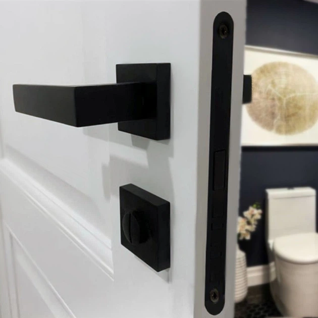 Комплект квадратної ручки з магнітним механізмом і фіксатором WC TRION FRESCO 49 Black чорний Матовий