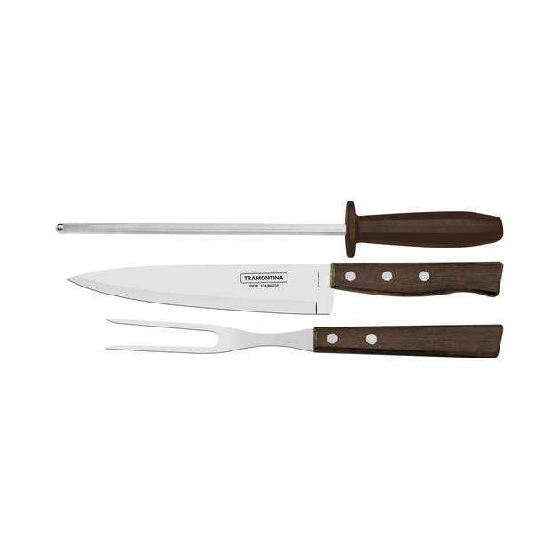 Набір для барбекю 3 предмети Tramontina Churrasco вилка, кухарський ніж 17.5 см і нержавіюча сталь.