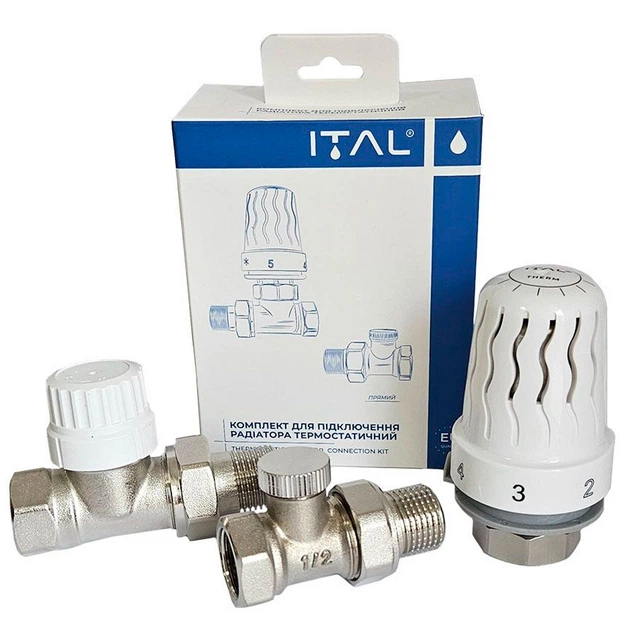 Термокомплект для радіатора ITAL прямий 1/2" з бічним підключенням IKB13114