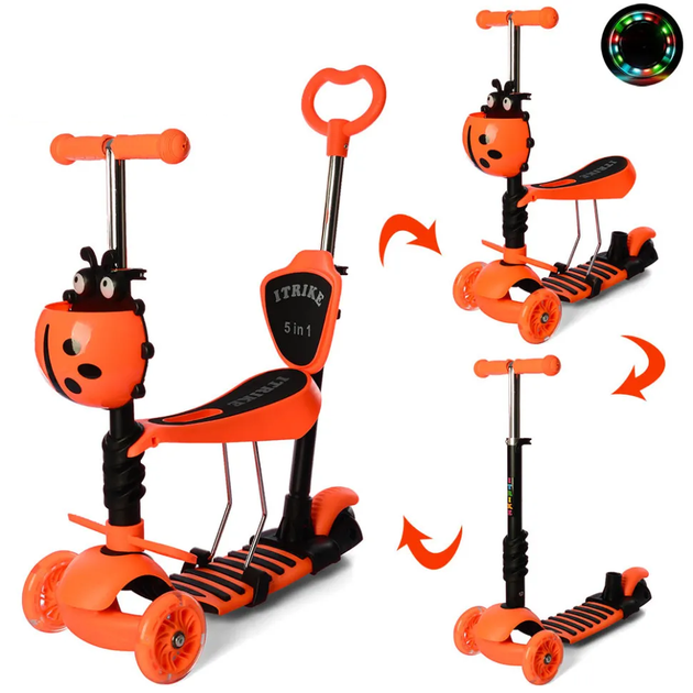 Самокат дитячий беговел 5 в 1 з батьківською ручкою колесами, що світяться, регульованим кермом 57х27х16 см (474244-Prob) Жо