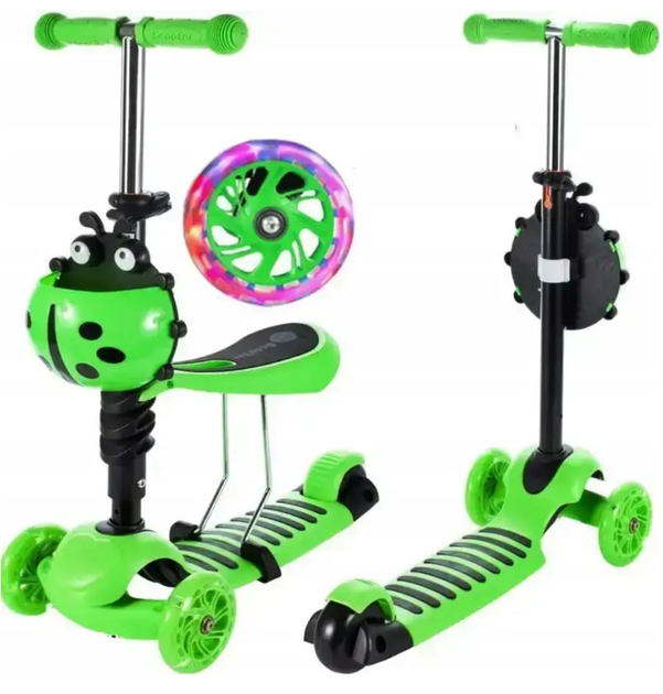 Дитячий самокат із батьківською ручкою Bambi SC20139 колеса PU зі світлом (Зелений)