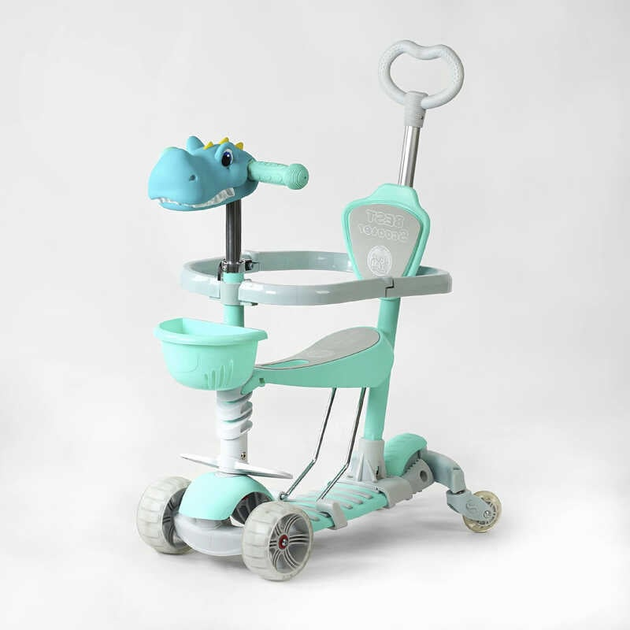 Самокат Best Scooter 5 в 1, PU колеса, підсвічування коліс, з бортиком. Turquoise (166619)