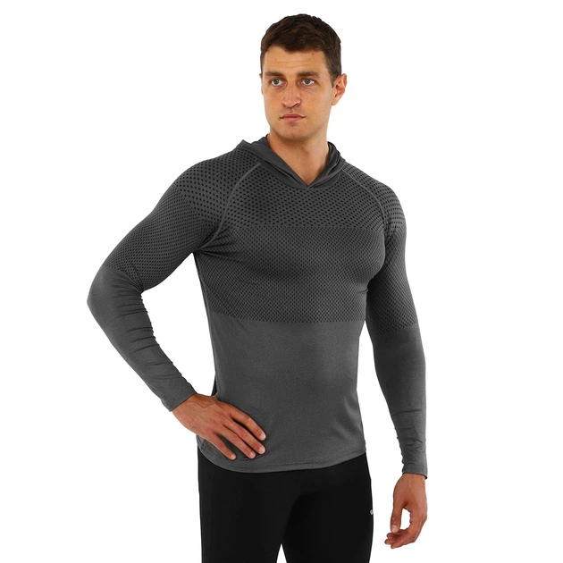 Лонгслів компресійний спортивний чоловічий з капюшоном JASON 61139 М Сірий