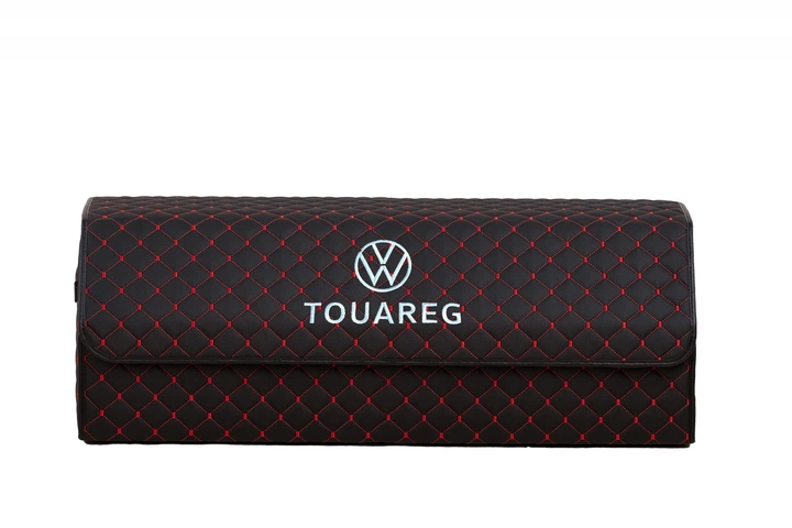 Органайзер у багажник автомобіля Volkswagen Touareg з перфорованого екошкіри та вишитим логотипом 100*30*30 см Чорний з черв